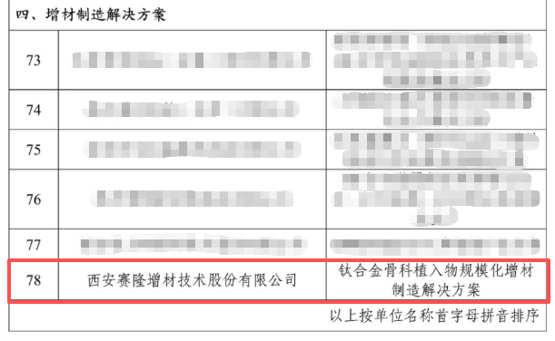 “钛合金骨科植入物规模化增材制造解决方案”是西安赛隆电子束3D打印技术在医疗骨科领域的重大技术创新和产业应用成果。公司投入50余台自主知识产权的电子束粉末床熔融装备,建成年产10万件3D打印医疗植入物生产线,建立了满足国家药品监督管理局(NMPA)注册认证要求的装备、原料、工艺的完整创新体系,为客户提供装备、软件支持、模型设计优化、打印工艺验证的全流程一站式服务。目前,公司与国内外20多家医疗器械公司建立业务合作,2025年累计向客户交付超5万件3D打印骨科植入物,推动3D打印医疗迈入规模化生产新阶段。